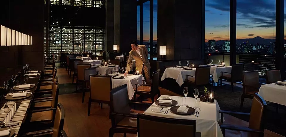 餐厅位于33层,能欣赏到皇宫花园和富士山的壮美远景。餐厅主要供应地中海美食,中不乏一系列灵感来源于日本及亚洲的佳肴。餐厅供应午餐和晚餐。