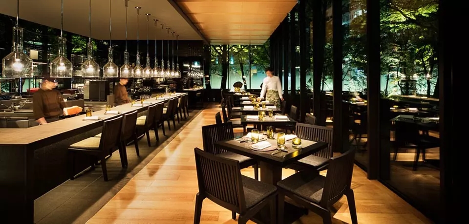 餐厅为你提供室内或室外的美丽绿植景观。餐厅提供午餐和晚餐服务,主要供应地中海美食,有伊比利亚火腿和当季芝士、新鲜海味等美食提供。这里也是全东京唯一一家提供高级清酒的餐厅。这些清酒从16世纪就开始酿造,一直延续了25代传人。